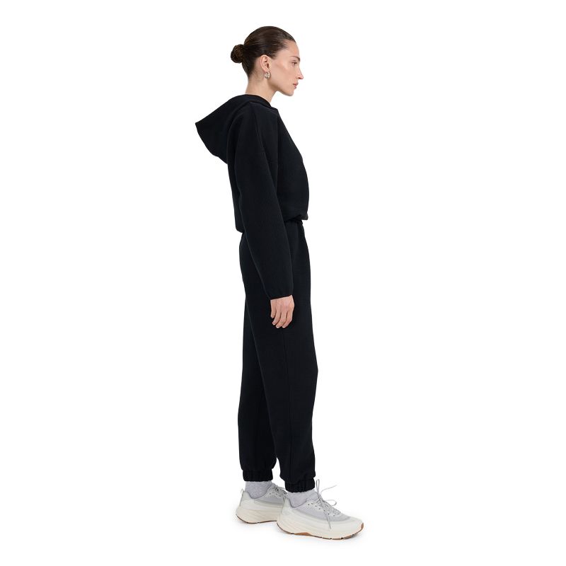 Дамският Панталон 4F Tracksuit Trousers in Waffle Knit съчетава комфорт, стил и практичност, създаден за тренировки и ежедневие.Дамският Панталон 4F Tracksuit Trousers in Waffle Knit е предназначен за тренировки, разходки и ежедневни спортно-ежедневни визии. Моделът е изработен от висококачествена плетена материя с рипсена структура, която осигурява мекота, еластичност и комфорт при продължително носене.Рипсената плетка придава модерен и текстуриран вид, а стандартната кройка с леко стеснен силует осигурява удобство и свобода на движение. Еластичната талия гарантира стабилно прилягане, без усещане за стягане, а меката материя поддържа оптимален комфорт през целия ден.Черният цвят и изчистеният дизайн правят панталона 4F Tracksuit Trousers in Waffle Knit лесен за комбиниране със суичъри, тениски и спортни обувки, подходящ както за спорт, така и за ежедневие. Панталонът е идеален за целогодишна употреба, особено през пролетта, есента и зимата.Характеристики:Материя: 52% Полиестер, 47% Памук, 1% Еластан;Хастар: 60% Памук, 40% Полиестер;Конструкция: рипсена плетка;Стандартна кройка (Regular Fit);Два странични джоба;Ластик в края на крачола;Моделът от снимката е висок 175см и носи S размер. С 4F Tracksuit Trousers in Waffle Knit получаваш универсален панталон за тренировки и свободно време – добави го към гардероба си и бъди неотразима!Разгледай още спортни дамски панталони в нашия каталог.