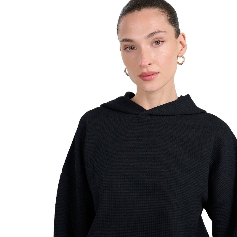 Дамският Суичър 4F Tracksuit Sweatshirt in Waffle Knit съчетава комфорт, топлина и стилен дизайн за спорт и ежедневно носене.Дамският Суичър 4F Tracksuit Sweatshirt in Waffle Knit е предназначен за тренировки, разходки и ежедневни спортно-ежедневни визии. Моделът е изработен от висококачествена плетена материя с рипсена структура на основата на полиестер с добавка на еластан, която осигурява мекота, еластичност и комфорт при продължително носене.Рипсената плетка придава модерен и текстуриран вид, като същевременно позволява оптимална свобода на движение. Стандартната кройка гарантира удобство, а маншетите и долната част с ластик осигуряват стабилно прилягане без усещане за стягане. Материята е дишаща и поддържа топлина при по-хладни дни.Черният цвят и изчистеният дизайн правят суичъра 4F Tracksuit Sweatshirt in Waffle Knit лесен за комбиниране с клинове, панталони и маратонки. Моделът е подходящ за целогодишна употреба и отлично се вписва в спортно-ежедневен стил.Характеристики:Материя: 52% Полиестер, 47% Памук, 1% Еластан;Стандартна кройка (Regular Fit);Овално деколте;Качулка;Моделът от снимката е висок 175см и носи S размер. Довери се на 4F Tracksuit Sweatshirt in Waffle Knit 20S за мекота, лекота и актуален спортен стил.Разгледай още спортни горнища в нашия каталог.